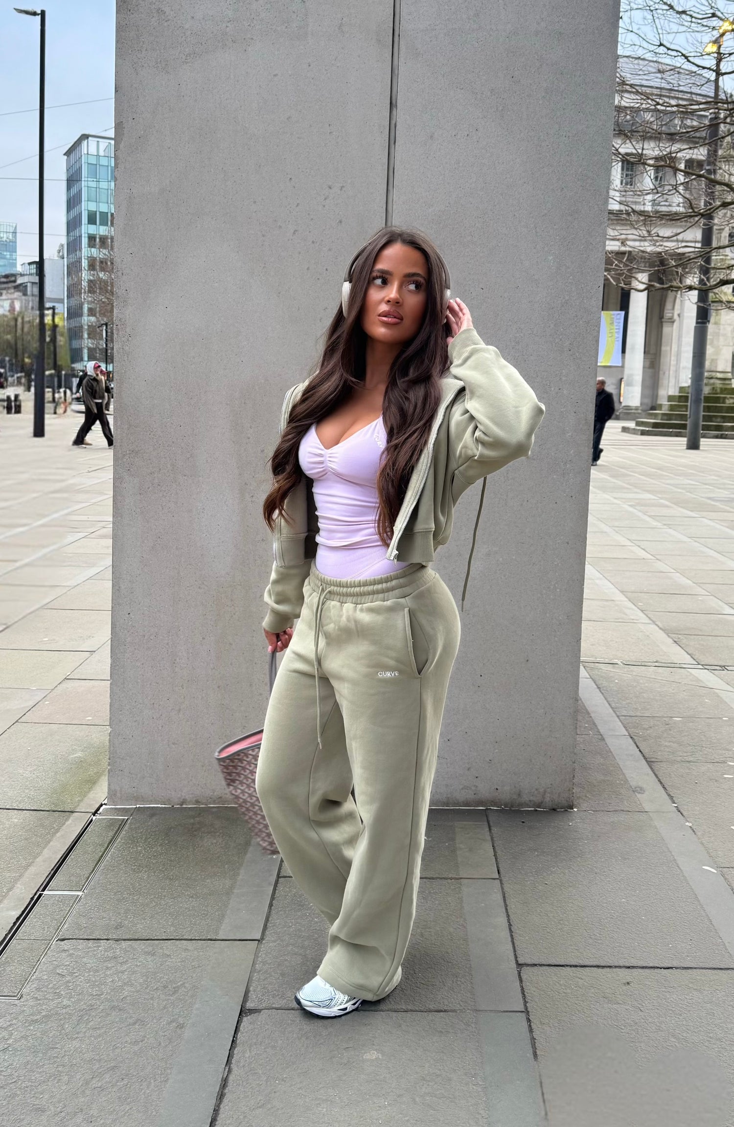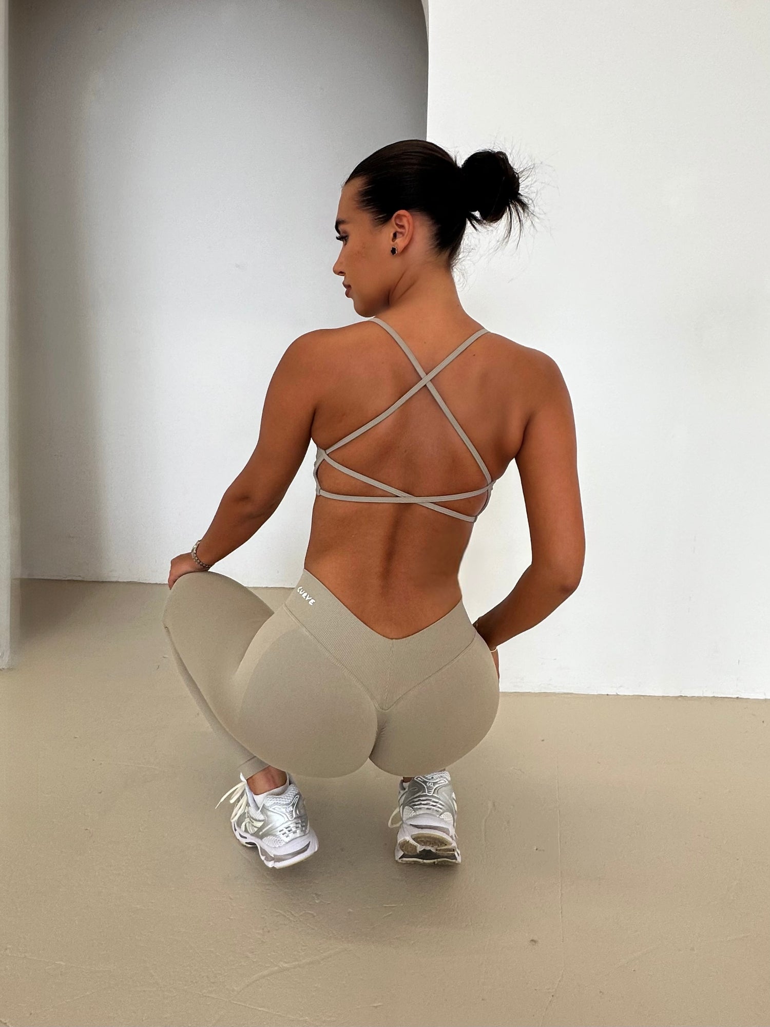 Cream deep cut sports bra